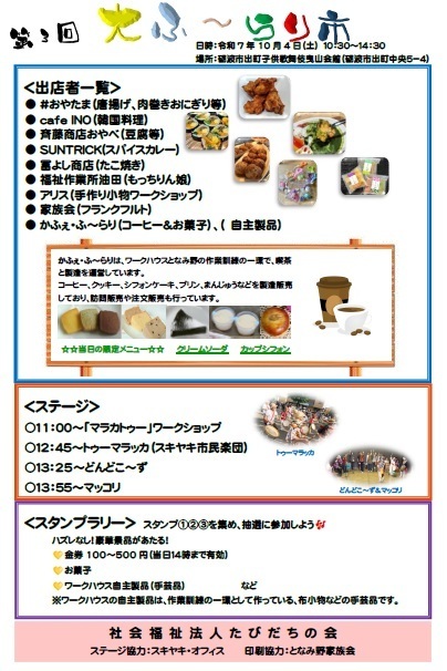 ステージ発表やフリーマーケット、キッチンカーの出店等も予定しております。